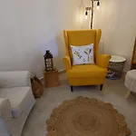 Het binnendecor biedt uitzicht op de tuin en is voorzien van een flatscreen TV met satellietzenders.